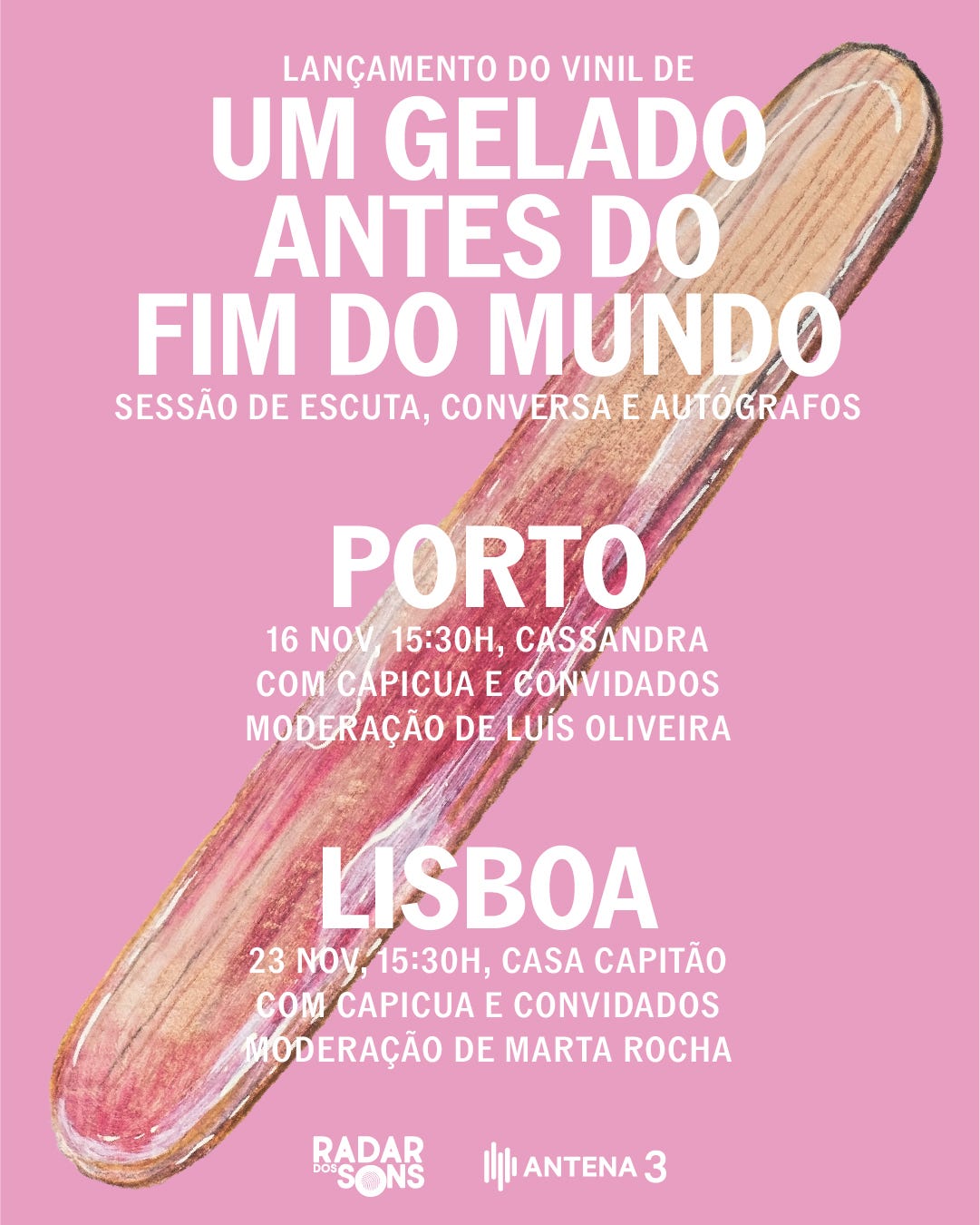A propósito do lançamento do vinil de “Um gelado antes do fim do mundo” decidi marcar dois encontros “românticos” para celebrar! E digo românticos porque acho mesmo que estarmos juntos, numa tarde de domingo de outono, para escutar um disco e conversar sobre ele, está mais do que no domínio do romantismo, nesta era de redes sociais e singles espalhados em playlists.